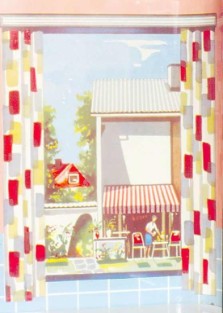 Durch Abbildungen von Vasen mit bunten Phantasieblumen und im Stil der Zeit gemusterte Vorhänge sowie durch farbige Vorratsschütten und Schranktüren werden diese Vorgaben im Miniaturformat verwirklicht und tragen zum gefälligen harmonischen Gesamteindruck der Blechküchen bei. Fast alle besitzen zudem Fenster, die einen Ausblick auf die "unmittelbare Nachbarschaft" gewähren und Rückschlüsse darüber zulassen, in welcher imaginären Wohngegend der Hersteller sein Produkt angesiedelt wissen möchte.