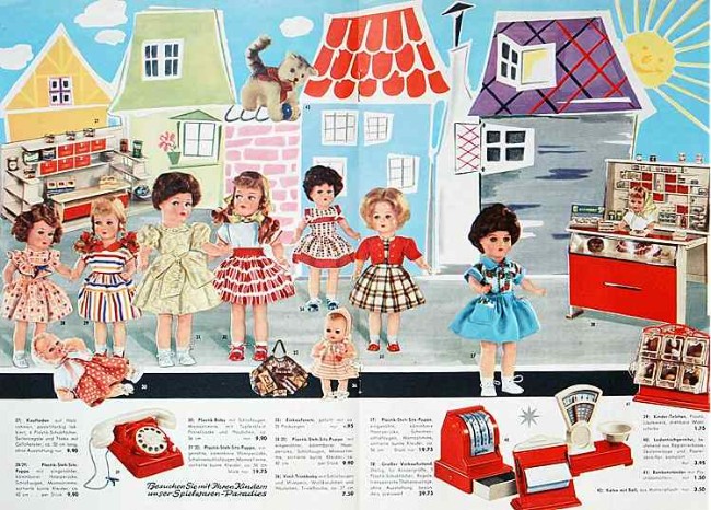 | | "Hier erfüllen sich alle Mädchenträume" - aus einem Spielzeugkatalog |  | "Schildkröt Puppen in aller Welt", Verkaufskarton, 44 x 20 x 12cm