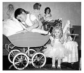 | | Große Freude über den neuen Puppenwagen 1 (Weihnachten 1959) |  | |  | Offensichtlich keine Liebe auf den ersten Blick: Die neue Puppe wird skeptisch beäugt.