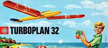 | Und noch ein "Strandspiel": "Turboplan 32" von Günther-Flugspiele. War in den 60ern mal große Mode und weit verbreitet, aber wohl wenige andere Trendspielzeuge sind so sehr aus den Gedächtnissen verschwunden wie dieses. Der mögliche Grund: Wenn es mal kaputt war, dann irreparabel. Und da zudem nicht sonderlich teuer, wurde es einfach weggeschmissen. Ich habe noch nie gesehen, dass irgendwo mal ein gebrauchtes angeboten wurde. Das hier zu sehende Exemplar ist unbespielt und stammt wahrscheinlich aus einem Lagerfund. Der federleichte, farbenfrohe und und im Bereich der Flügel transparente Kunststoff lässt das Herz eines Plastik-Fans wie mir höher schlagen...Schachtel: 26 x 11 x 5 cm. Bei der Schachtel unten (mit gleichem Inhalt) handelt es sich wohl um das Vorgängermodell. |