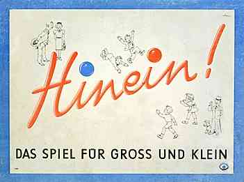 | "Hinein - Das Spiel für Gross und Klein", Flipperspiel aus Pappe mit originellen Illustrationen im Stil der Zeit, Hersteller: Mensler-Spiele, Maße: 40 x 30 x 3 cm |