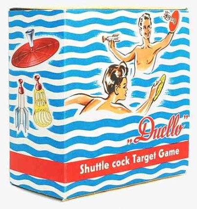 | | Für Vater und Sohn gab es offenbar eine alternative Version mit Federbällen in Raketenform. |