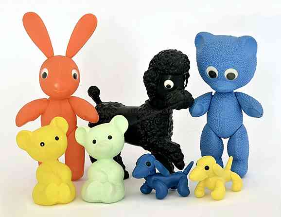 | | |  | | Solche "Ziehharmonika-Katzen" waren in der DDR beliebte Spielzeuge, der Körper lässt sich wie der Balg eines Akkordeons auseinanderziehen. Entworfen von Libuse Nklova und von Fatra in der Tschechoslowakei hergestellt. |