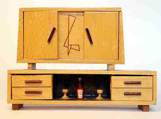 Diverse Puppenstuben - Wohnzimmerschränke der 50er und 60er Jahre, Höhe zwischen 13 und 18,5cm