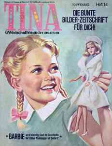 Zum Artikel auf Spiegel Online: www.spiegel.de  TINA – "Die bunte Bilder-Zeitschrift für Dich"Titel: "Barbie wird lebendig! Lest die Geschichte der süßen Modepuppe" - Comics z.B.: "Geheim-Agentin Jane Bond", "Weltraum Girls", "Jackie und die Wild Boys – Auf Jackies Traum vom Starruhm folgt ein böses Erwachen", "Gi-Gi das Zirkusmädchen und sein Pferd Go-Go", "Meine freundin Yam Yam", "Der Hengst Blacky" (1967)